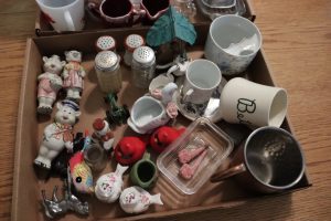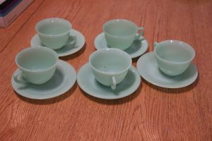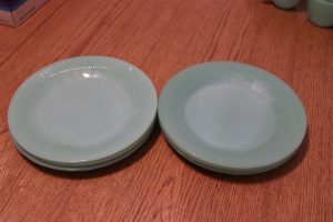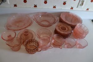 - Pink depression glassware, Fire King Jadeite, pressed & pattern glass, figurines, oil lamps, Haviland Limoges china set & other collectible glassware.
