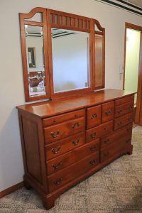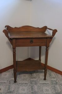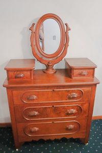 - Antique furniture includes Burl walnut dresser, dove tailed blanket chest; bookcases, plantstands, camel back trunk, full size bed frame, oak wall phone, piano stool, side tables, gateleg drop leaf table, wood theater seats & more.
