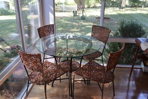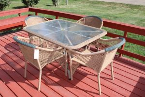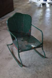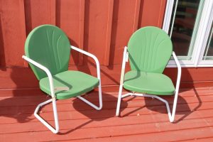 - Vinyl wicker patio furniture & vintage metal lawn chairs
