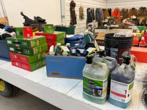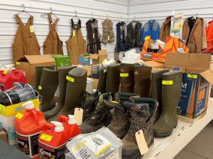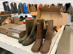 - assortment of new & used hunting attire, boots, waders, etc.