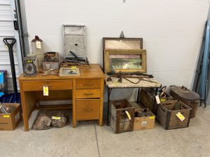Also selling crocks, vintage Pepsi bottle cooler, collectible glassware, dairy bottles and collectibles.
