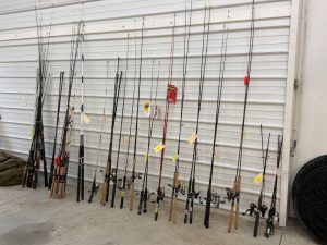- Huge assortment of new fishing tackle and multiple fishing rods & reels